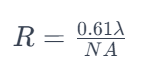 分辨率是顯微鏡成像中一個(gè)重要的指標(biāo),它決定了觀察者能夠分辨的最小細(xì)節(jié)。分辨率與波長(zhǎng)之間存在直接的關(guān)系,由以下的阿貝分辨率公式所示: